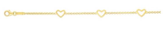14k Gold 6″ Heart Bracelet w/ Lobster Clasp