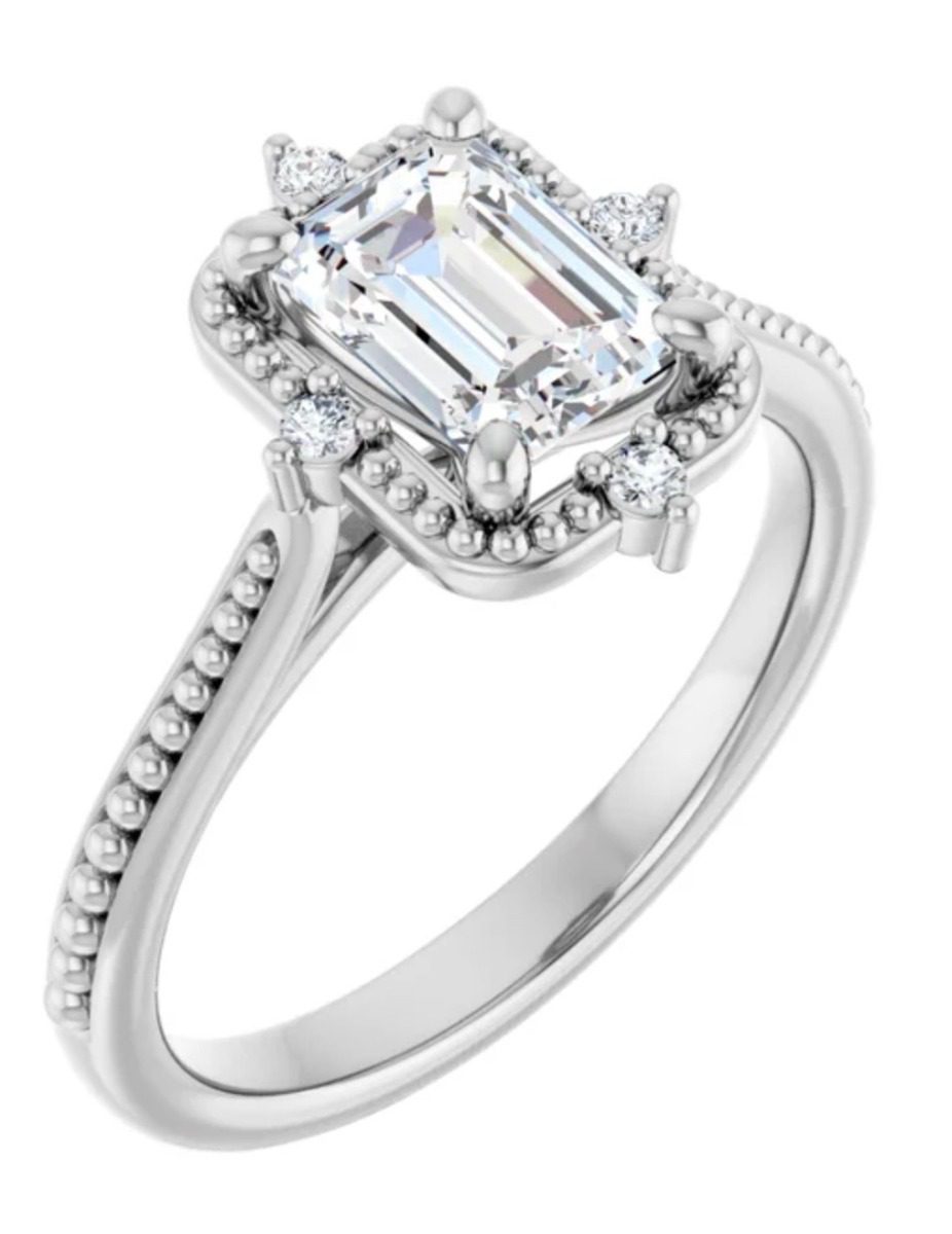 14K White 7×5 mm Emerald Engagement Ring Mounting