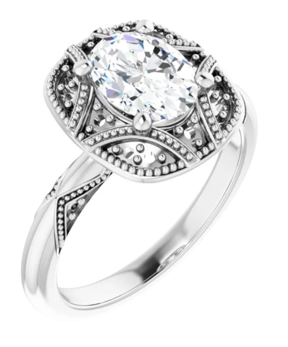 14K White 8×6 mm Oval Engagement Ring Mounting