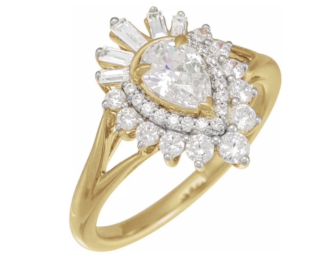 14K Yellow 7×5 mm Pear 5/8 CTW Natural Diamond Semi-Set Engagement Ring