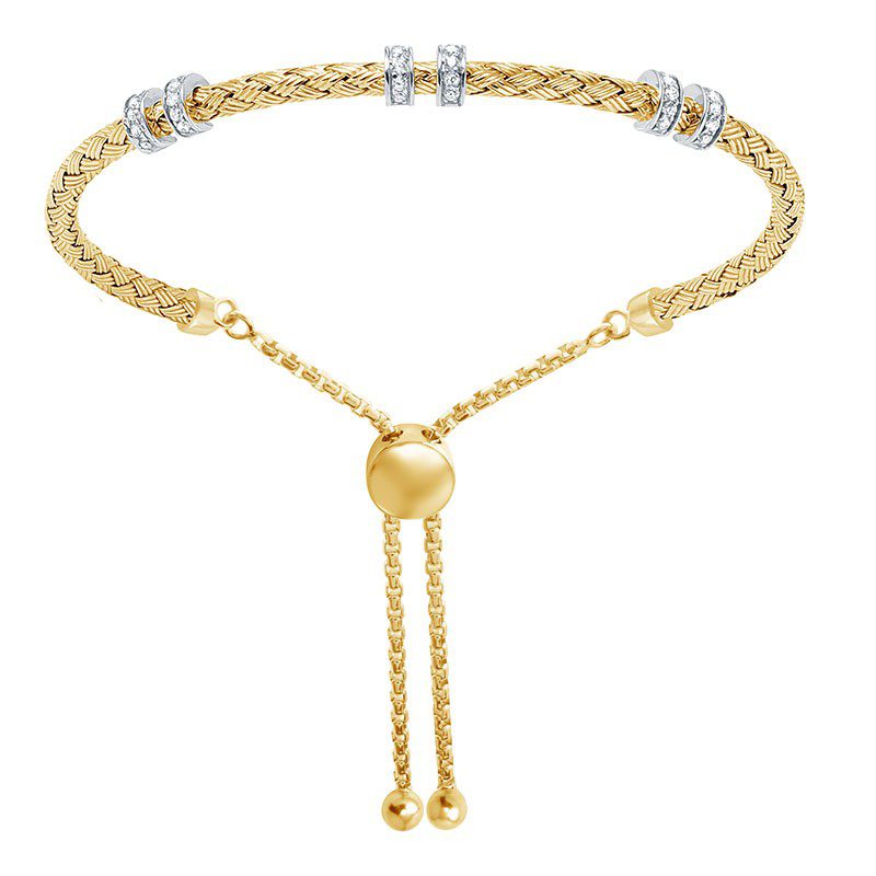 STERLING SILVER 3MM MESH FRIENDSHIP BRACELET, MONICA, 18K YELLOW GOLD FINISH