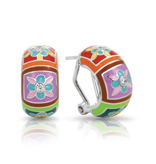 Description: Hand-painted multicolored Italian enamel with pav??-set stones set into rhodium-plated, nickel allergy-free, 925 sterling silver.