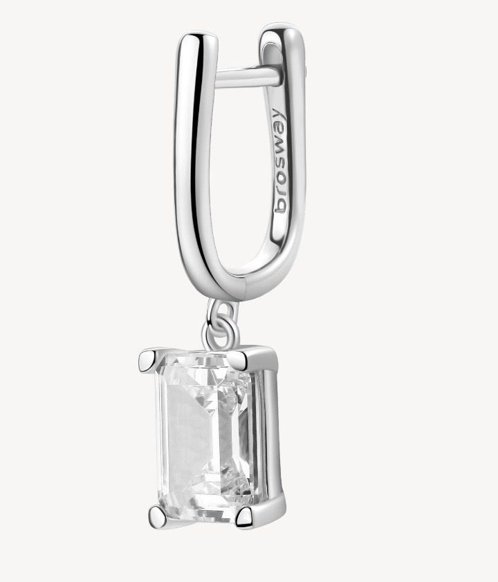 925 rhodium-plated sterling silver single pendant earring with baguette clear cubic zirconia.
