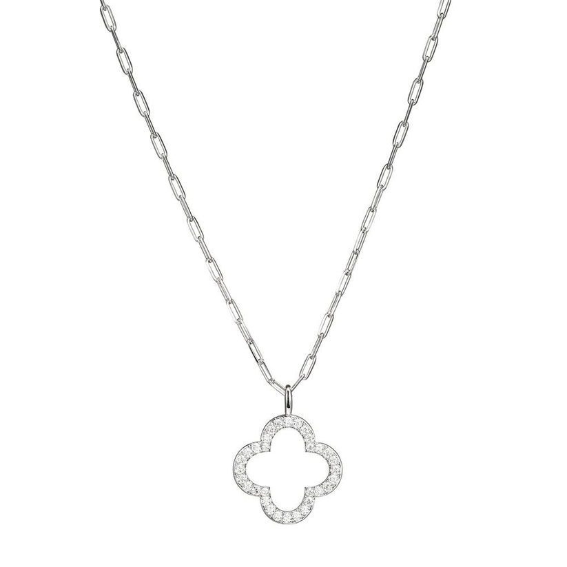 Charles Garnier Sterling Silver Necklace Made with Paperclip Chain and Clover Pendant