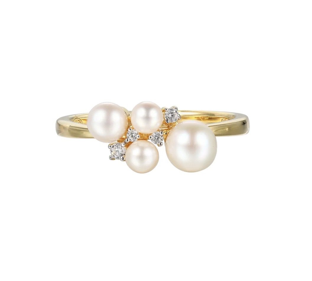 Sterling Silver Freshwater Pearl (5-5.5mm, 4-4.5mm, 3-3.5mm) and Cubic Zirconia Ring with Gold Finish