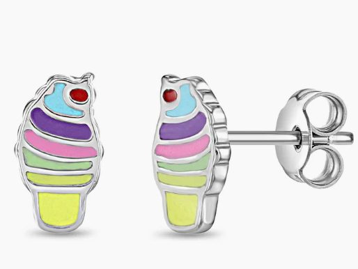 These adorable ice cream cone stud earrings are such a wonderful birthday gift idea for little girls. She will absolutely love the fun and vibrant mix of enamel colors all throughout these stud earrings. This multicolored ice cream cone is crafted from a hypoallergenic material, perfect for young girls with sensitive skin. A complimentary gift box is included with your purchase.