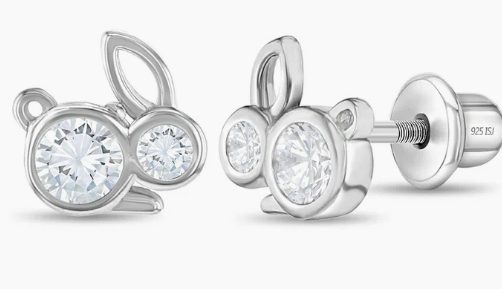 These sweet bunny rabbit earrings for little girls are too adorable to pass on. Featuring two beautiful clear cubic zirconia stones for the body, these earrings are sure way to make her smile! Crafted in 925 sterling silver, these adorable screw-back earrings are naturally hypoallergenic and safe for sensitive ears. They feature threaded posts and a safety back system to ensure your child’s earrings stay comfortably in place. These quality girl’s earrings make a perfect gift for any occasion as well as for everyday fashion. A complimentary gift box is included for easy giving!