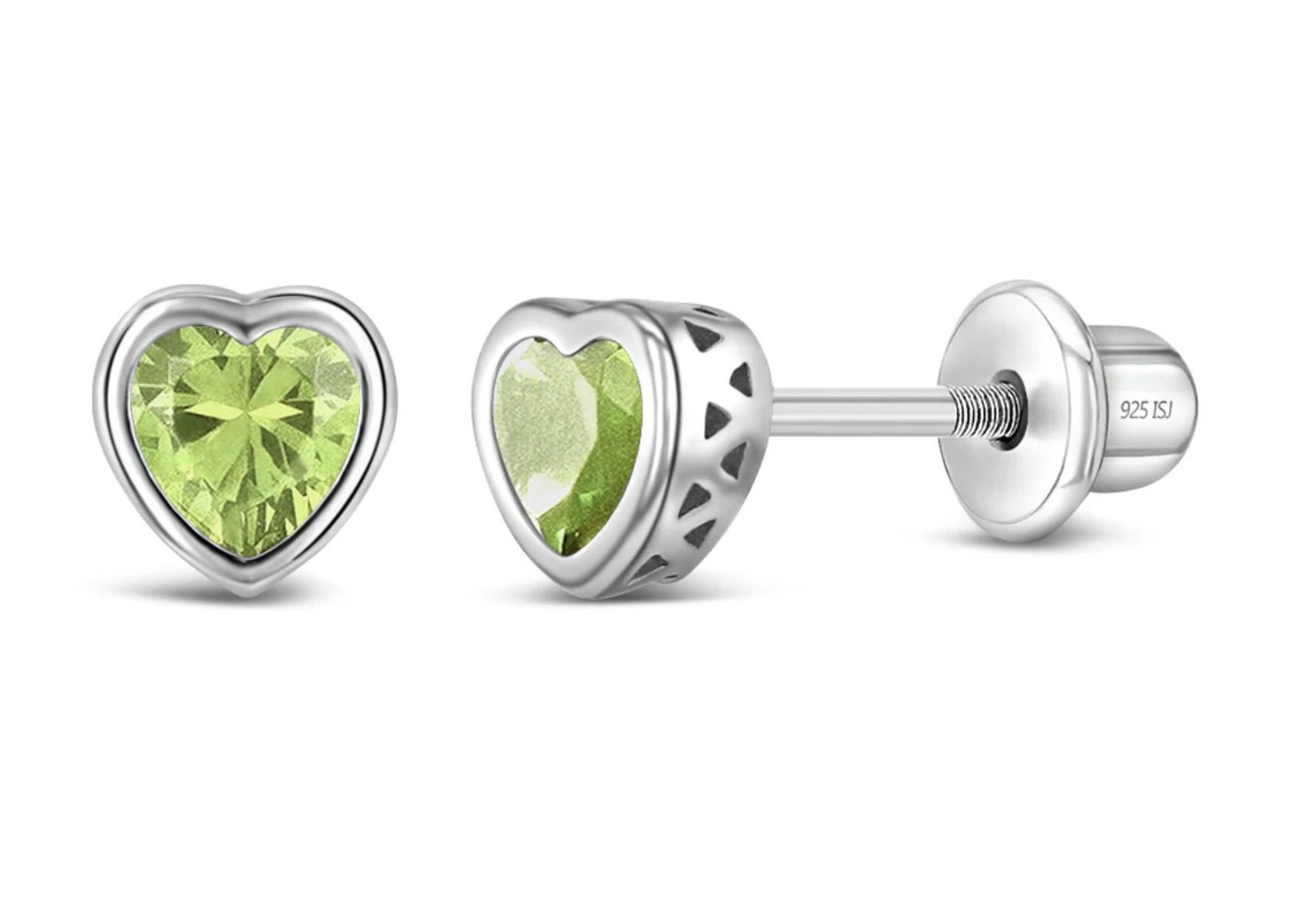 CZ Birthstone Heart Baby / Toddler / Kids Earrings Screw Back Basket Setting – Sterling Silver