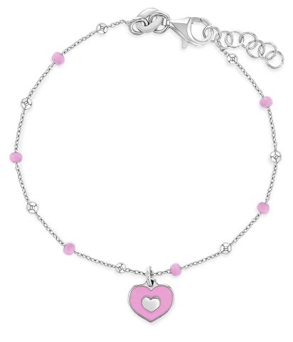 Fall in love with the details of this pretty in pink enamel bracelet. An adorable girly bracelet that features a fun pink enamel heart charm that dangles from a sweet ball chain bracelet that is adorned with pink enamel balls. Gift this sweet accessory to the little girl in your life to add some color and personal style to their daily outfits. Crafted from hypoallergenic 925 sterling silver, this bracelet is wonderful for little girls with sensitive skin. Gift Box included.