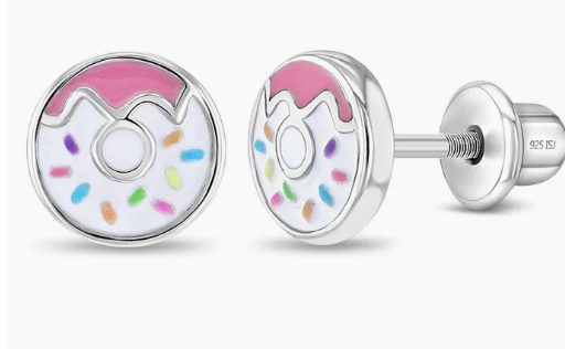 Frosted with Sprinkles Donut Kids / Children’s / Girls Earrings Screw Back Enamel – Sterling Silver