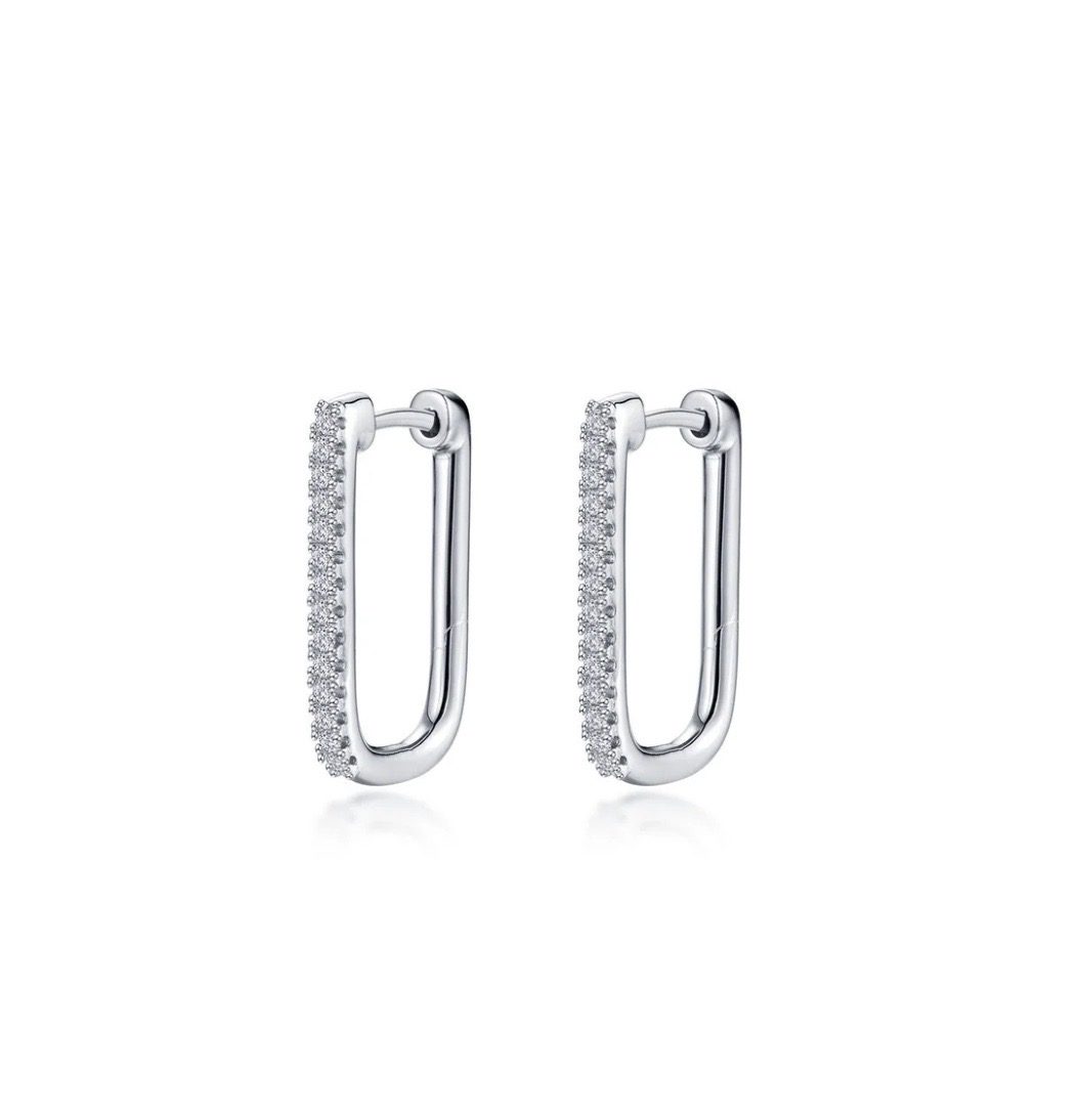 When classic meets contemporary. These charming rectangle hoop earrings feature Lafonn’s signature Lassaire simulated diamonds in sterling silver bonded with platinum.