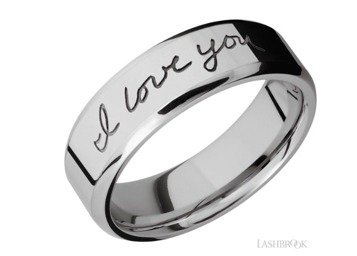 Lashbrook Custom Handwriting Wedding Band, Available In A Variety of Metals, Shapes, and Finishes, Prices Will Vary