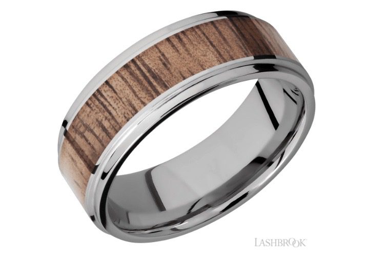 Lashbrook 8mm Flat Edged Titanium Wedding Band with Koa Exterior Detail