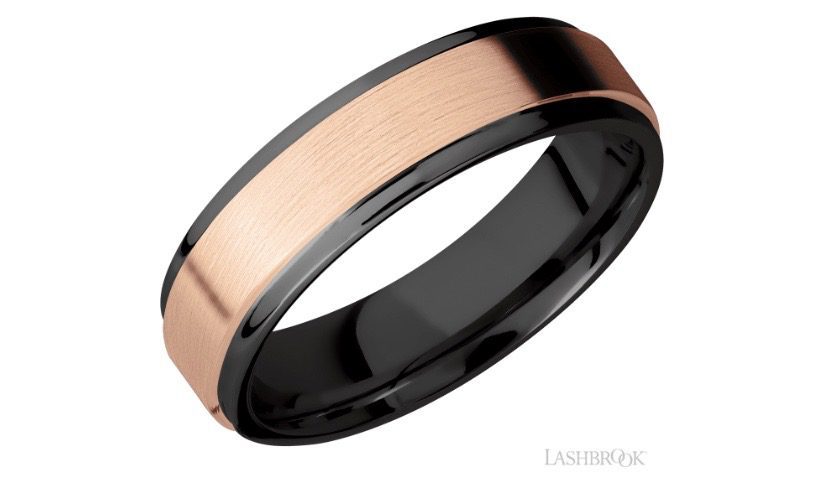 Lashbrook 6mm Flat Edge Zirconium Wedding Band with 14K Rose Gold Inlay