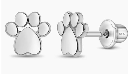 A beautiful pair of earrings that are wonderful for young girls who have a beautiful furry pet at home. A bold dog paw that will bring the brightest of smiles to young girls. Polished earrings created from 925 sterling silver, these earrings are hypoallergenic and safe for sensitive skin. These fun earrings include safety screw backs, that allow the earrings to remain safely in place. Gift Box included with purchase.