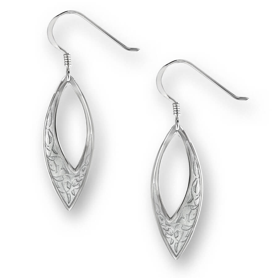 Vitreous Enamel on Sterling Silver Marquis Wire Earrings . Rhodium Plated for easy care. Gift Boxed
