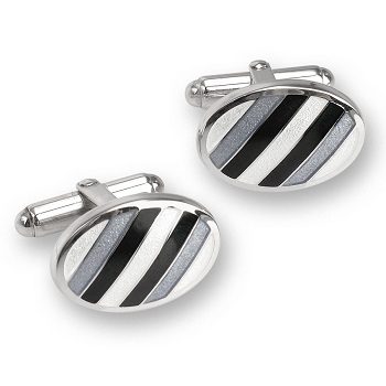 Vitreous Enamel on Sterling Silver Oval Stripes T-Bar Cufflinks . Rhodium Plated for easy care. Gift Boxed.