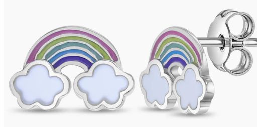 A pair of enamel rainbow push back earrings that will easily fit into her magical birthday celebration. These adorable rainbow earrings are one she will immediately fall in love with because of its sweet multicolored enamel rainbow details. Crafted from 925 sterling silver, these earrings are safe for girls who have sensitive ears. A magical pair of earrings that will have her imagination above the clouds. A gift box is included with purchase.