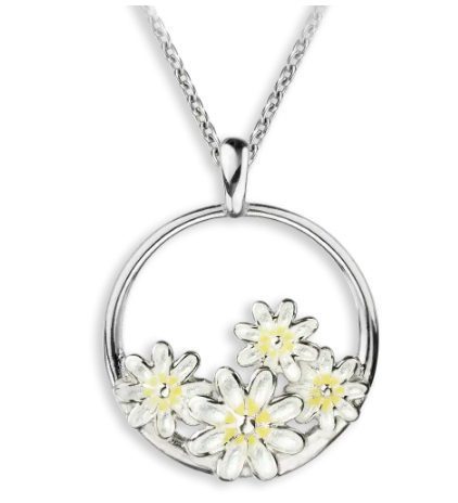 White Daisy Cluster Necklace. Sterling Silver